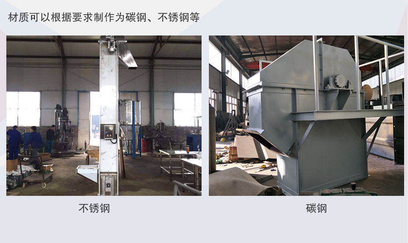 ne15斗式提升机是采用板式链条为牵引件的一种斗式提升机,采用了单排链样式,料斗长250mm,板厚3mm,容积约2.5L,材质可以根据要求制作为碳钢、不锈钢等,每小时提升量为15立方。在水泥,冶金,建材,矿业等行业使用较多。