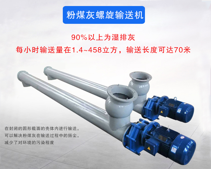 粉煤灰螺旋输送机主要用于输送粉煤灰、水泥、矿粉等散状粉末物料,是混凝土搅拌站、稳定土拌合站常用输送设备,采用优质减速箱,重型设计,具有转矩大、噪音低等特性,双节距叶片,减少物料输送中被压缩程度。