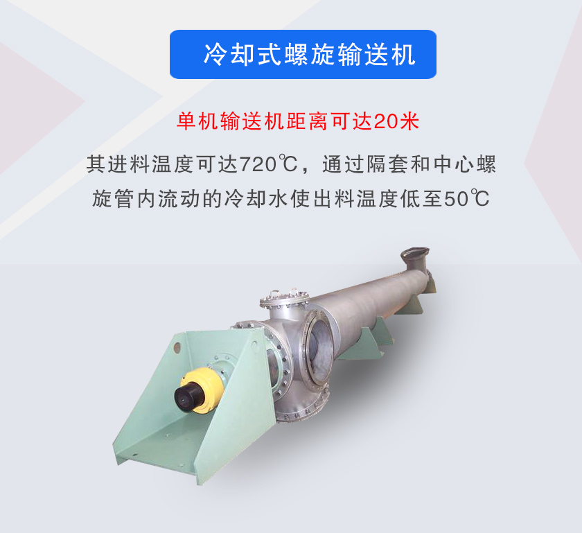 冷却式螺旋输送机采用冷却水或者氮气等介质转换物料温度,可用于输送高温物料,冷却式螺旋输送机进料温度可达720℃,是集输送与冷却为一体的输送设备.