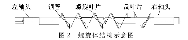 材质:与物料接触部分为304不锈钢(轴直径159mm,叶片厚度10mm。螺旋套管径377mm,厚度8mm),外夹套材质:Q235,管径460mm、壁厚10mm。