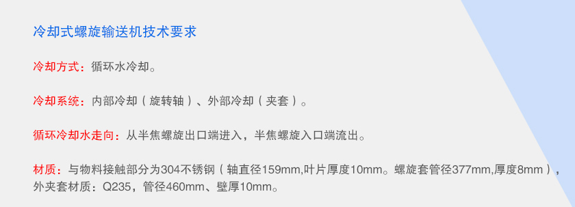 循环冷却水走向:从半焦螺旋出口端进入,半焦螺旋入口端流出。