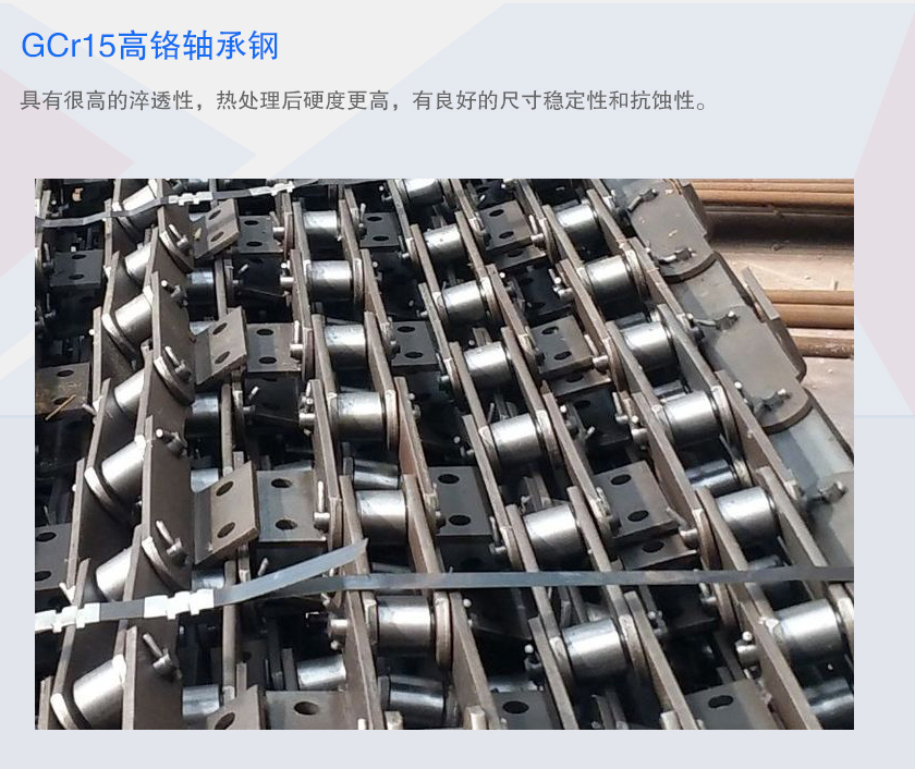 GCr15高铬轴承钢:具有很高的淬透性,热处理后硬度更高,有良好的尺寸稳定性和抗蚀性。