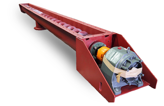 200型U型螺旋输送机工作时,电机带动旋转的螺旋叶片将物料推移而进行输送,螺旋输送机旋转轴上焊的螺旋叶片,叶片的面型根据输送物料的不同有实体面型、带式面型、叶片面型等型式。使物料不与螺旋输送机叶片一起旋转的力是物料自身重量和螺旋输送机机壳对物料的摩擦阻力。