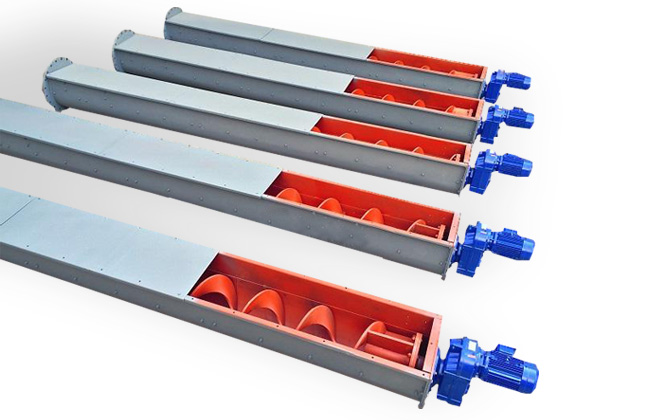 无轴螺旋输送机主要由驱动装置、头部装配、机壳、无轴螺旋体、槽体衬板、进料口、出料口、机盖(需要时)、底座等组成。