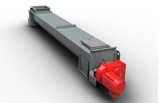 无轴螺旋输送机主要由驱动装置、头部装配、机壳、无轴螺旋体、槽体衬板、进料口、出料口、机盖(需要时)、底座等组成。