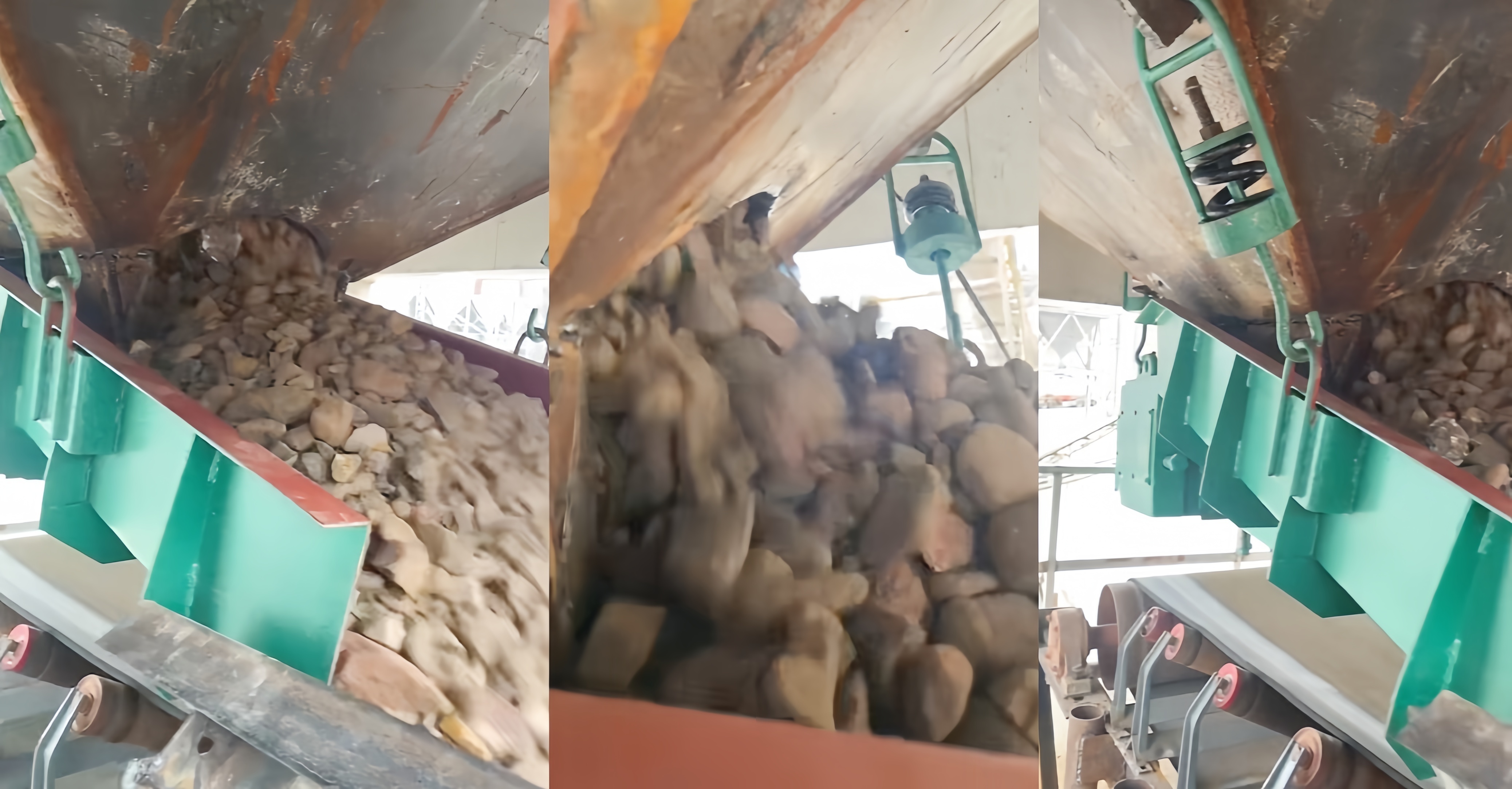DZGL-512型振动给料机依靠激振源产生定向激振力通过两台反向运转的振动电机产生合成激振力,使物料平稳输送,适用于矿山、砂石等大块及散状物料;电磁式机型则通过电磁铁通断产生高频吸力,带动槽体微幅高频振动,物料在槽体内受振动作用,沿槽体方向向前滑动或抛掷移动,从而实现均匀、连续给料。