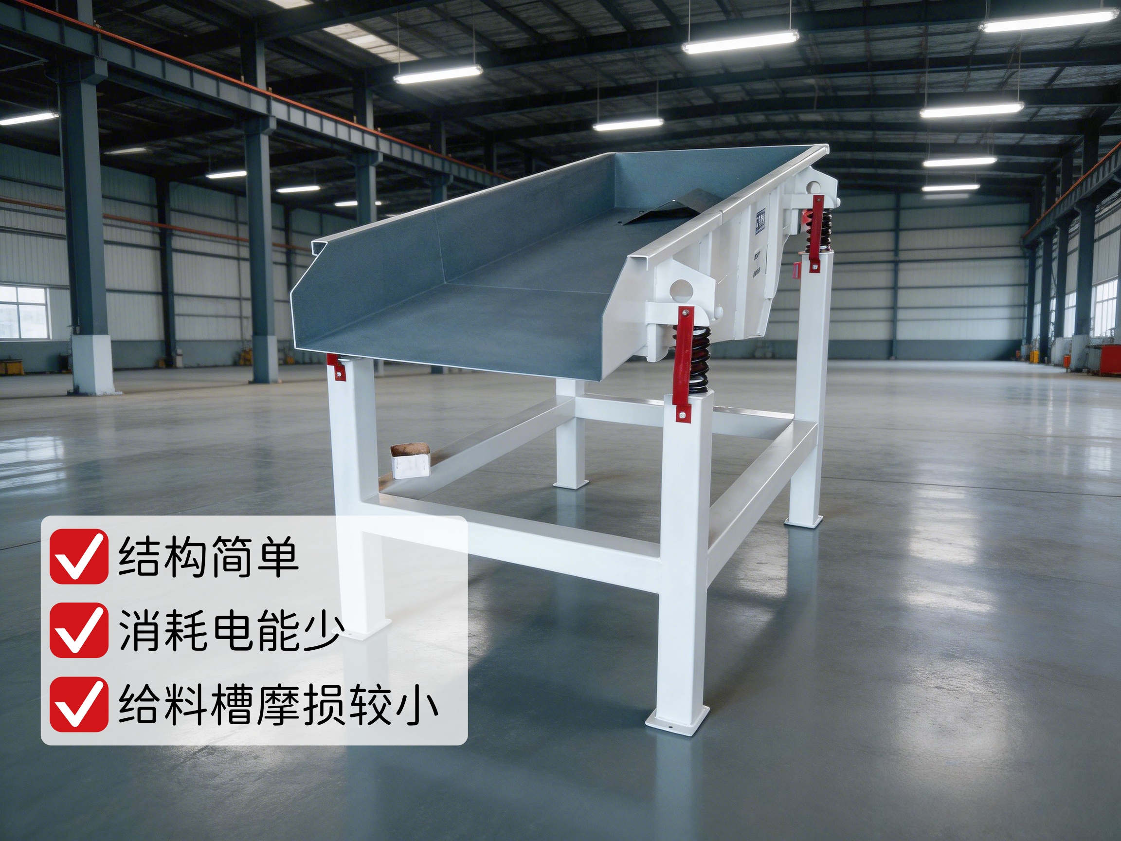 因为给料槽中的物料在给料过程中连续地被抛起,并按抛物线的轨迹向前进行踊跃运动,所以给料槽的磨损较小。
