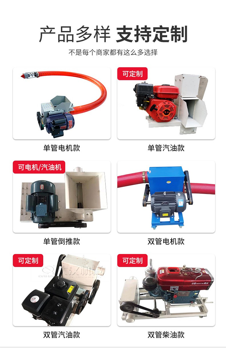 车载软管吸粮机管径有100mm、120mm、160mm,型号越大,价格越贵