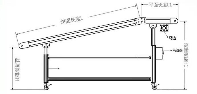 链板输送机由电机、传动轴、链轮、链条、轴承、润滑剂、链板、滚筒、张紧设备、等组成。其中链条和链板主要起到带动产品运动的作用。链条使用循环往复运动提供了牵引动力,金属板是承载体,在链条牵引力的作用下承载物料沿着水平或倾斜方向输送。