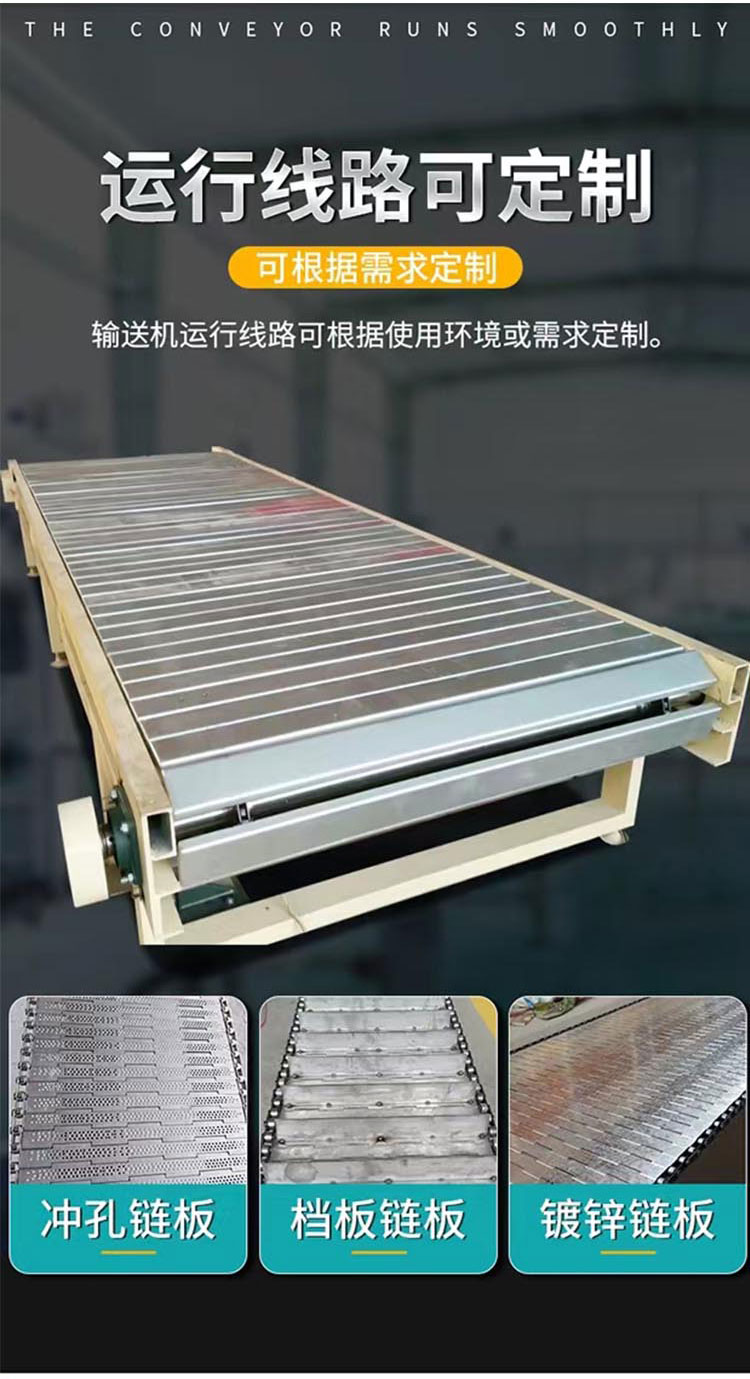 以上是链板输送机工作原理的介绍,链板输送机可确保在很长的距离内提取和输送散装材料,该设备可以水平、倾斜、垂直输送,在食品、医药、金属、矿物、肥料等行业有广泛的应用。