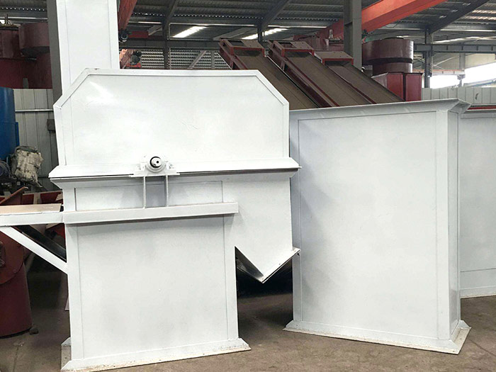 斗式提升机由壳体、牵引件(输送链)、料斗、驱动轮(头轮)、改向轮(尾轮)、张紧装置、导向装置、加料口(入料口)和卸料口(出料口)。