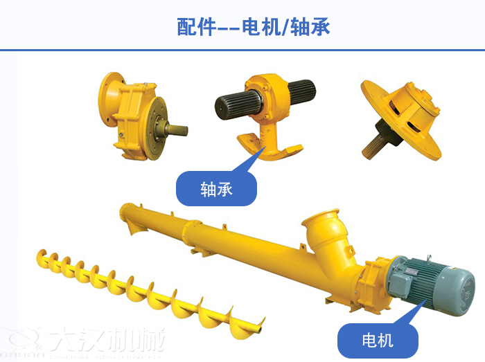 螺旋输送机吊轴承是易损件,为防止物料进入轴承,减少轴承磨损,悬挂轴承的轴衬通常采用铁或铝合金等,同时轴承上装有密封和润滑装置,润滑一般使用油杯挤入润滑脂,且在轴承内装密封圈。