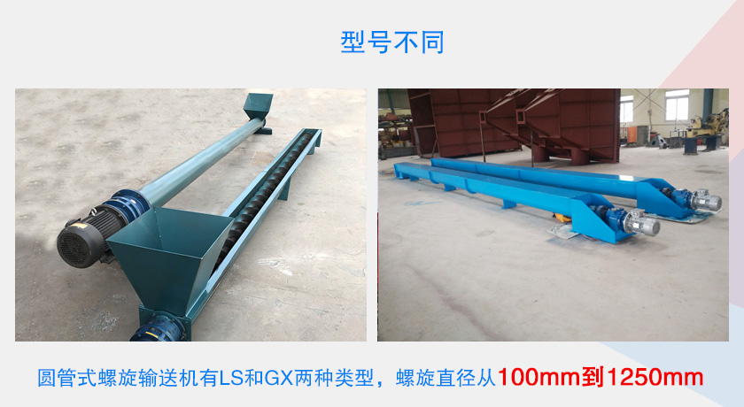 圆管式螺旋输送机有LS和GX两种类型,螺旋直径从100mm到1250mm,不同型号对应的圆管式螺旋输送机输送量不同,而且在耗材上也是存在变化的。圆管螺旋输送机选型越大,对应的耗材量就越多,市场报价自然就会越高,在材质,设计等方面相同情况下,每相差一个型号,圆管螺旋输送机价格就会增高500~1000元左右,所以用户需要结合自身的产量需求来选择合适的型号。