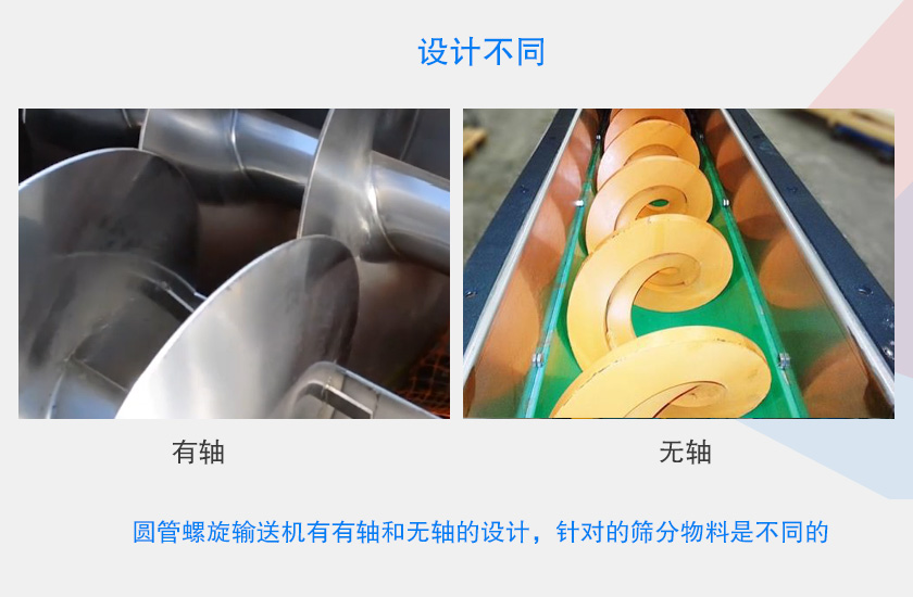 圆管式螺旋输送机有有轴和无轴的设计,针对的筛分物料是不同的,但是采用不同的设计对于圆管式螺旋输送机的成本也是不同的,一般情况下,无轴的制造难度比有轴的大,所以无轴设计会比有轴设计的圆管螺旋输送机贵800~1200元左右。