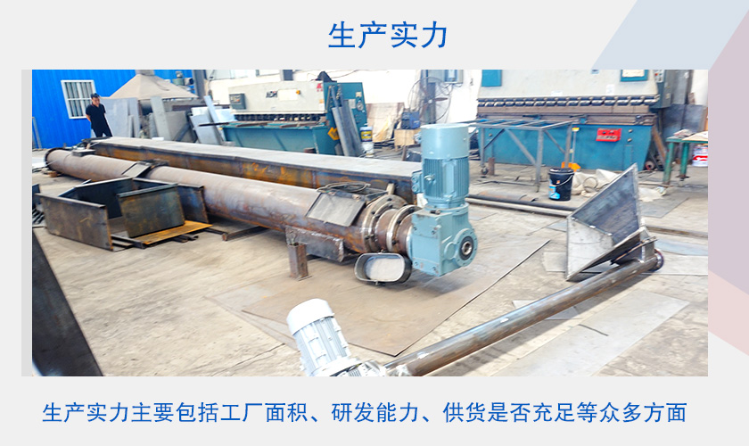 生产实力主要包括工厂面积、研发能力、供货是否充足等众多方面,大型的螺旋输送机厂家一般拥有比较成熟化的工厂和技术团队,能够在生产上保证其品质,还能够满足用户更多需求,有实力为用户提供定制化设计,另外螺旋输送机设备及相关备件供应充足,能够为用户提供更好的保障。