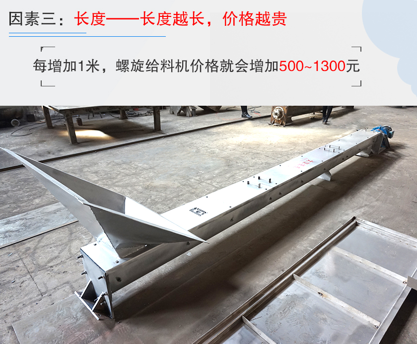 螺旋给料机可根据用户需要加长设计,每增加1米,螺旋给料机价格就会增加500~1300元。